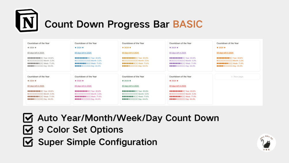 Introducing our Count Down Progress Bar, crafted with Notion formulas for a seamless and efficient experience! This innovative tool allows you to visually track the remaining days of the year, as well as the progress of the current month, week and day. Enjoy a faster loading speed compared to standard plugins, with an aesthetic that perfectly matches Notion’s native templates.