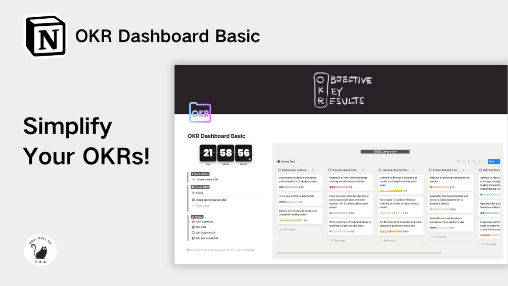 Introducing our OKR Dashboard Basic Notion template! This is your essential tool for setting and achieving your objectives with clarity and ease. With its streamlined design and intuitive features, managing your goals becomes a seamless part of your workflow.